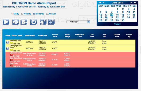 Entrambi i sistemi wireless sono dotati di un interfaccia di configurazione che permette l’impostazione di intervalli di campionamento/trasmissione e di soglie di allarme alla violazione delle quali si attiva una procedura di notifica attraverso l’invio di sms, e-mail o attivazione di dispositivi esterni come sirene o compositori GSM.